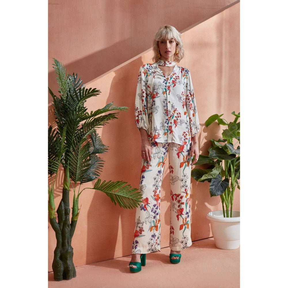 Description : SHIRT-Fit- Relaxed FitCrimson Relaxed Fit ShirtTie Neck Accent Elasticated Blouson SleevesSelf Fabric ButtonButtoned Front OpeningShirttail Hem PANTS-Fit- Relaxed FitCrimson Relaxed Fit PantsSide PocketsElasticated Back