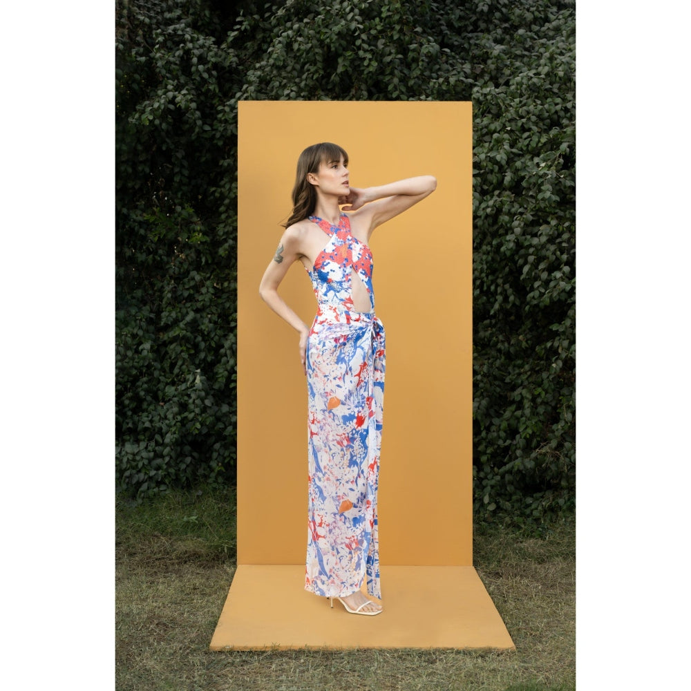 Description : Heading out for a sundowner party at the beach? This bodysuit and sarong set from MANDIRA WIRK will be a perfect choice. Team yours with strappy flats and some beaded jewellery.