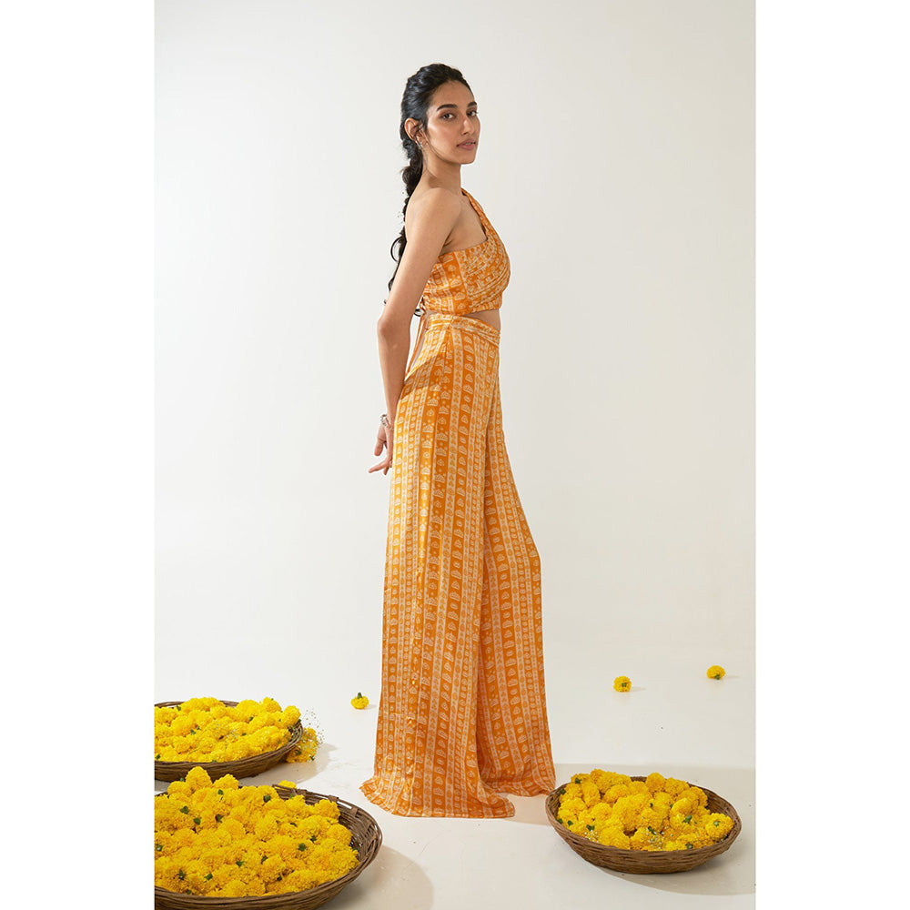 Mustard & White Floral Stripes Co-Ord (Set of 2)