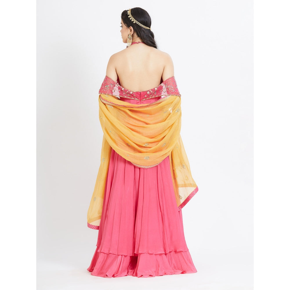 MANDIRA WIRK Fuchsia Embroidered Anarkali (Set Of 3)