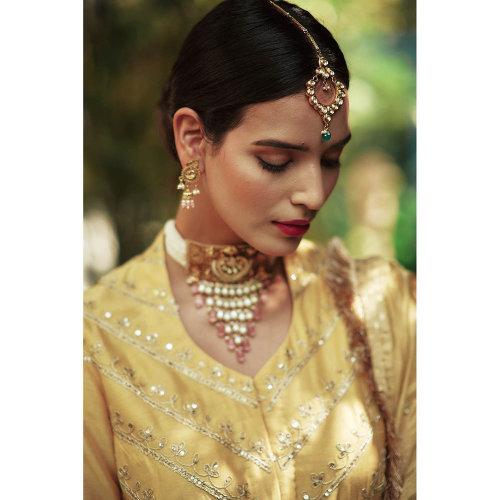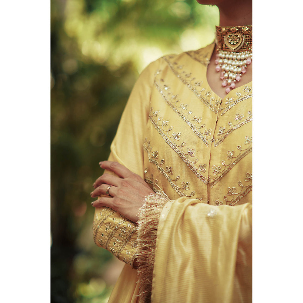 House of Pink Yellow Chanderi Embroidered & Embellished Kurta Lehenga & Dupatta (Set of 3)