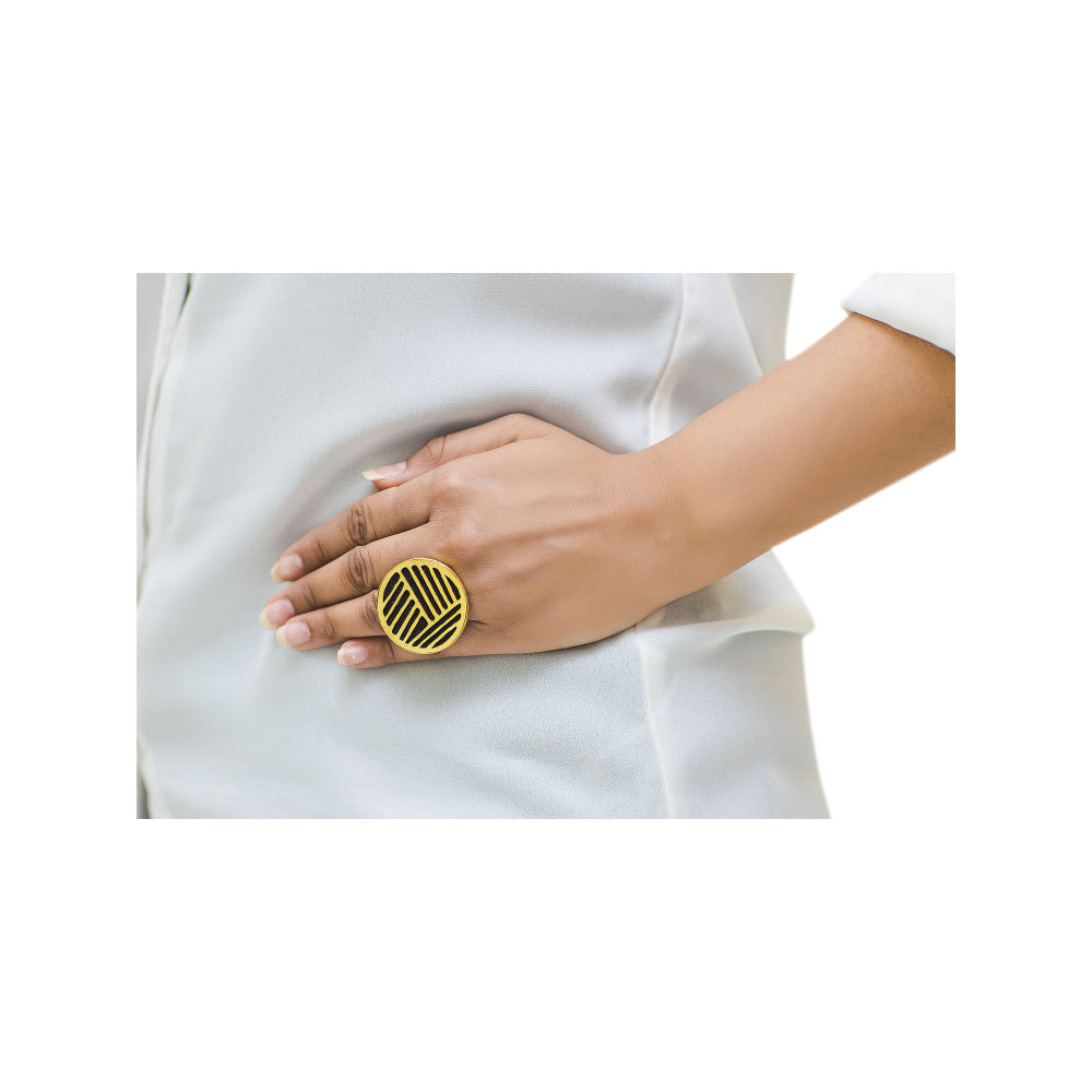 Description : Gold plated ring with black velvet fabric. handmade in India.