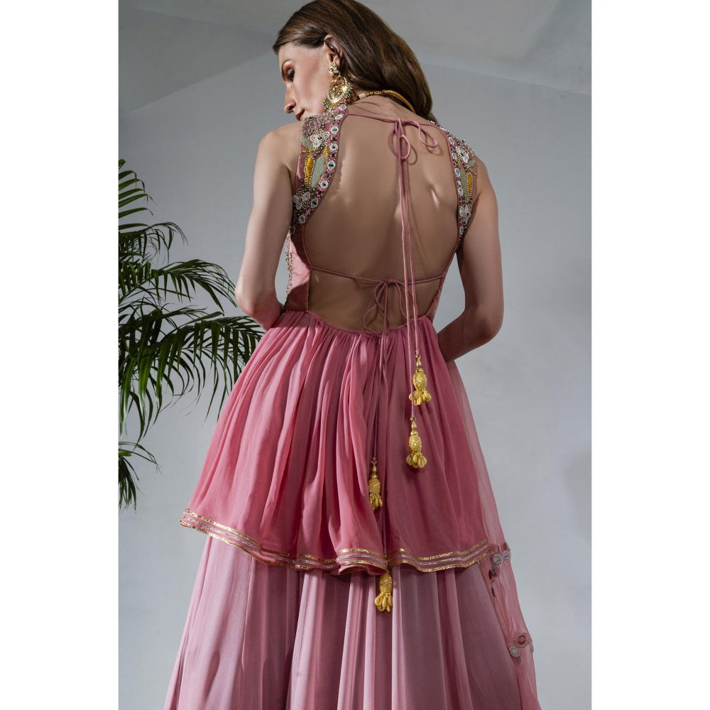 Neha Khullar Pink Georgette Kurti Sharara with Organza Dupatta (Set of 3)