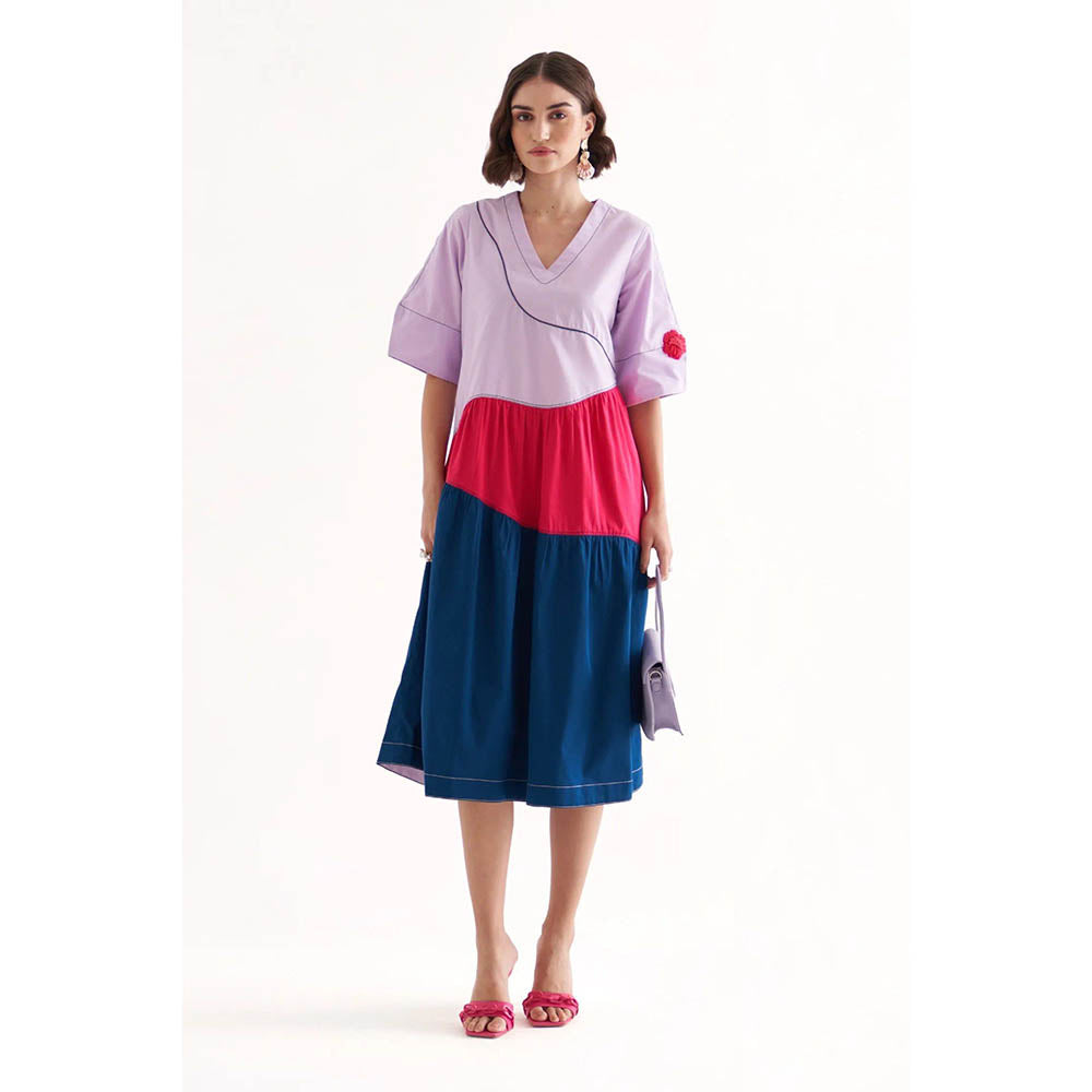 Description : Amp up your wardrobe with this versatile women wear from Our Love. It is crafted from high-quality fabric. It features multi-color colorblock dress, it has half sleeves, v-neck and slip on closure. Team it up with heels and sling bag.