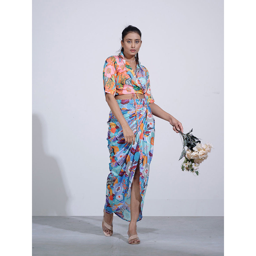 AFFROZ Gul Multi-Color Floral Printed Wrap Skirt and Crop Top (Set of 2)