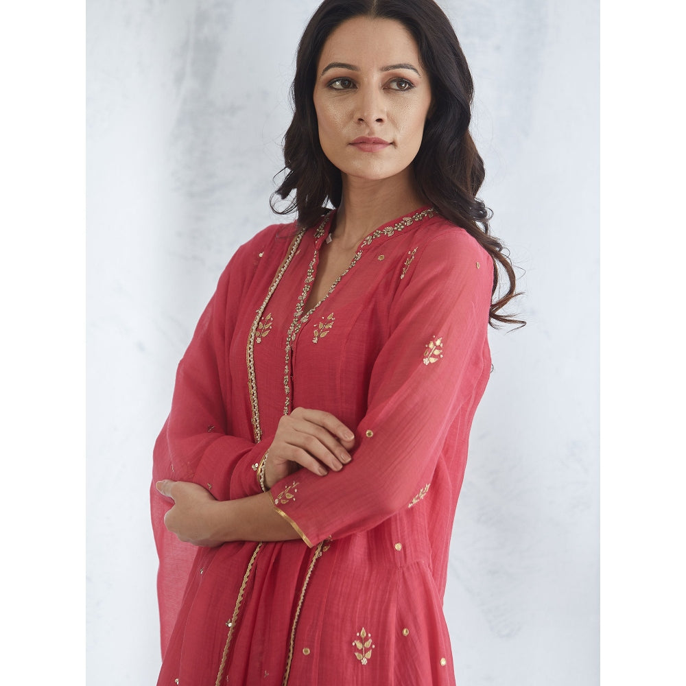 Mandira Wirk Kurta With Zardozi Neck Detail And Pants & Embroidered Dupatta (Set of 3)