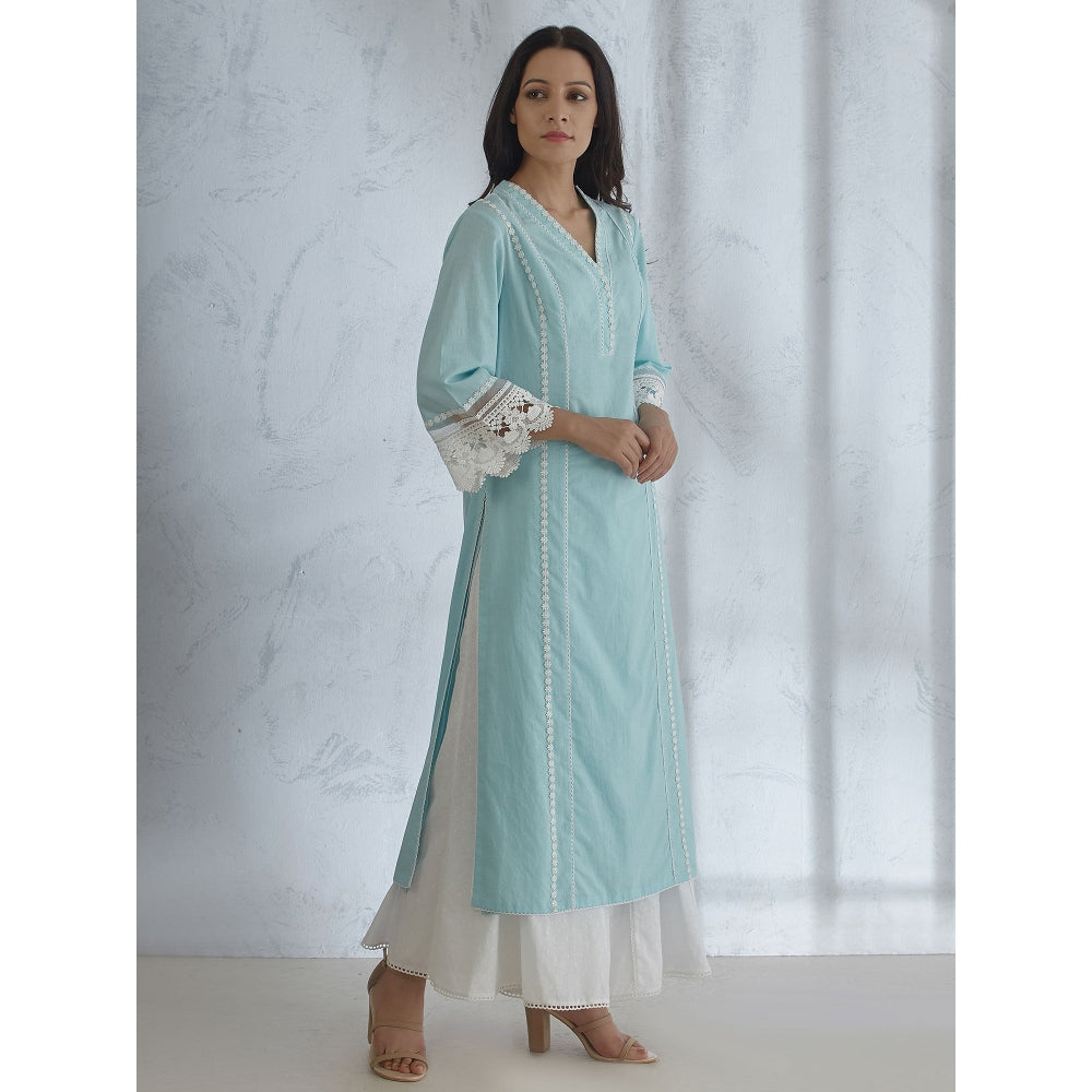 Mandira Wirk Light Blue Kurta With Lace Detailing & Panelled Palazzo (Set of 2)