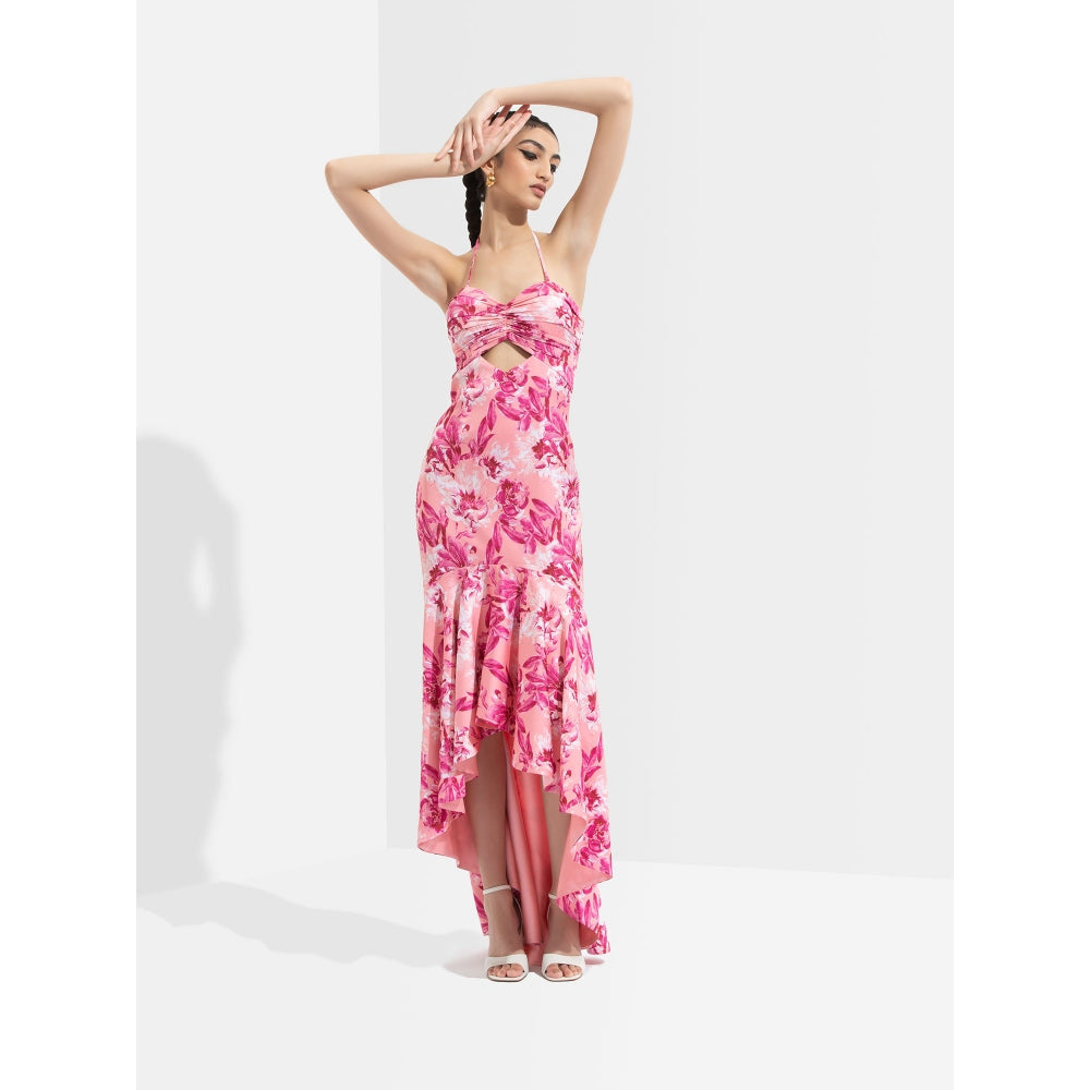 MANDIRA WIRK Sakura Printed High Low Dress Pink