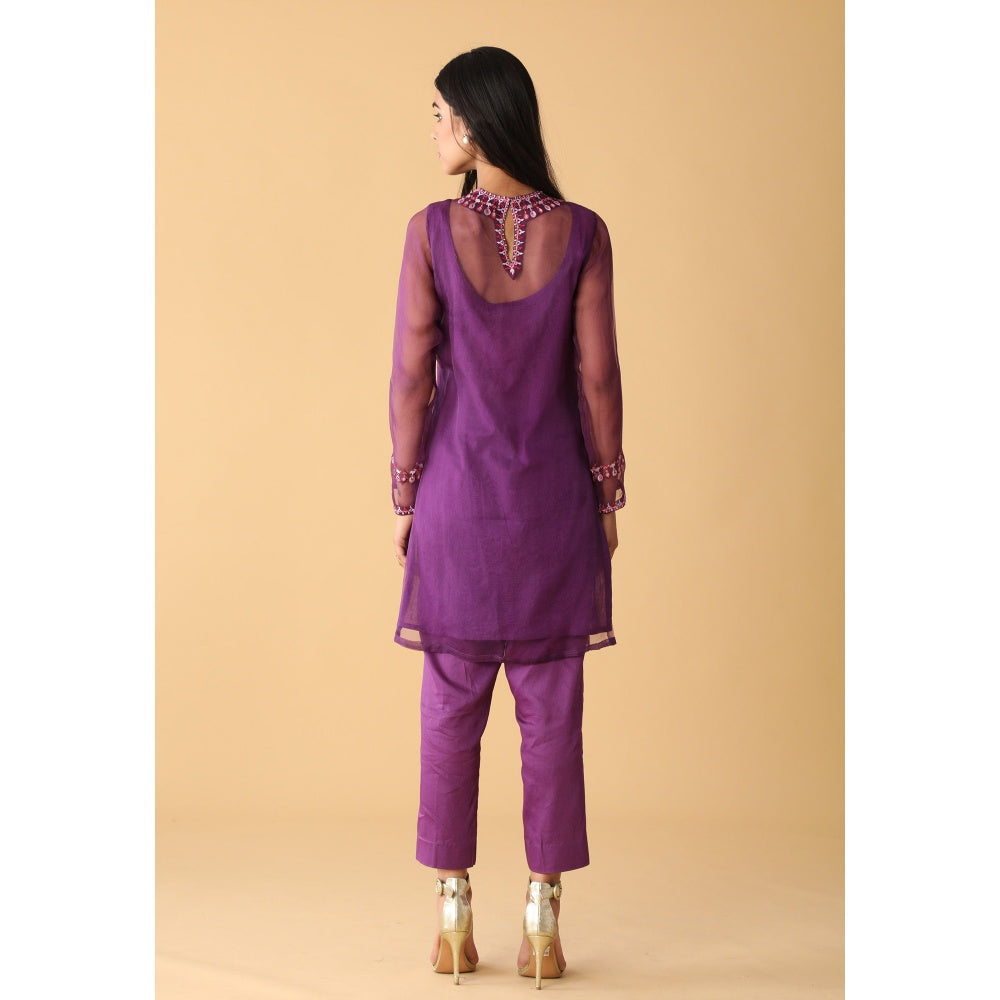Description : Summery jewel embroidered set designed in sheer pure organza set with jewel embroidery on neck, sleeves, and bottom hemline. The simple and elegant set is an ideal dressy Indian outfit to wear in summer evenings. The flowy and breezy outfit feels weightless and allows you to dress up. Intricate jewel motifs have subtle embroidery on this beautiful set, making this outfit an elegant and classy choice for any outdoor occasion.