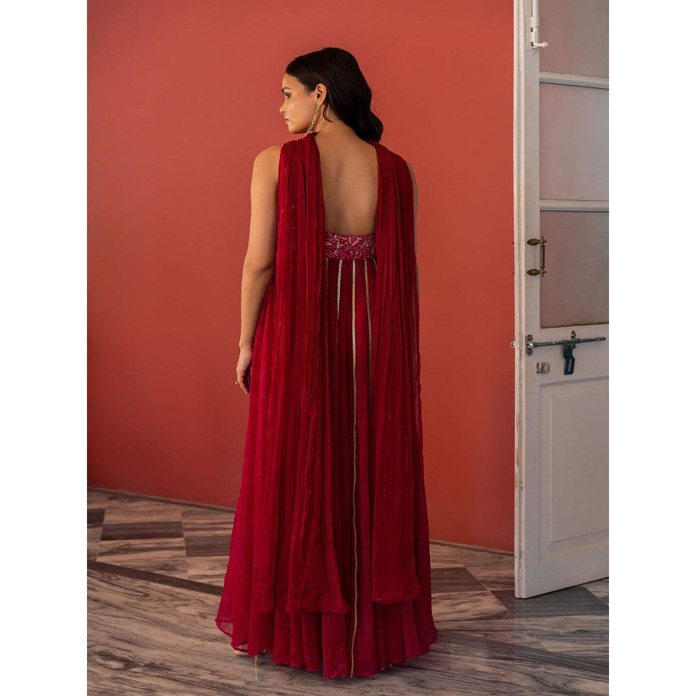 17 : 17 by Simmi Saboo Pink Mandala Anarkali & Pants with Choker Dupatta (Set of 3)