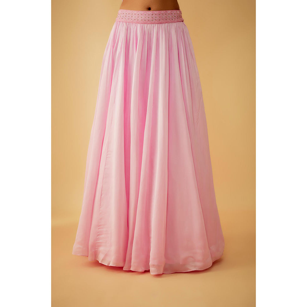 1999AD Onion Pink Jacket with Embroidered Stitched Blouse and Lehenga (Set of 3)