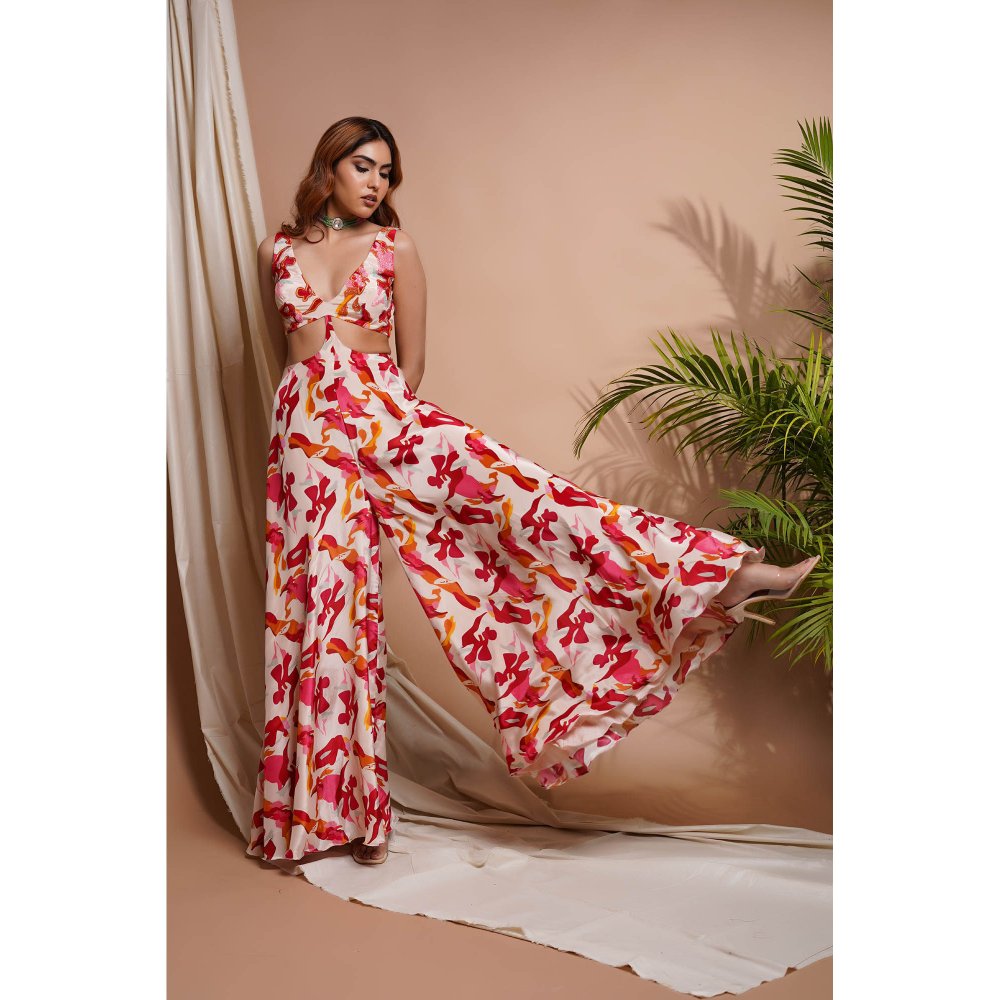 AHI Clothing Cream Abstract Printed V-Neck Jumpsuit