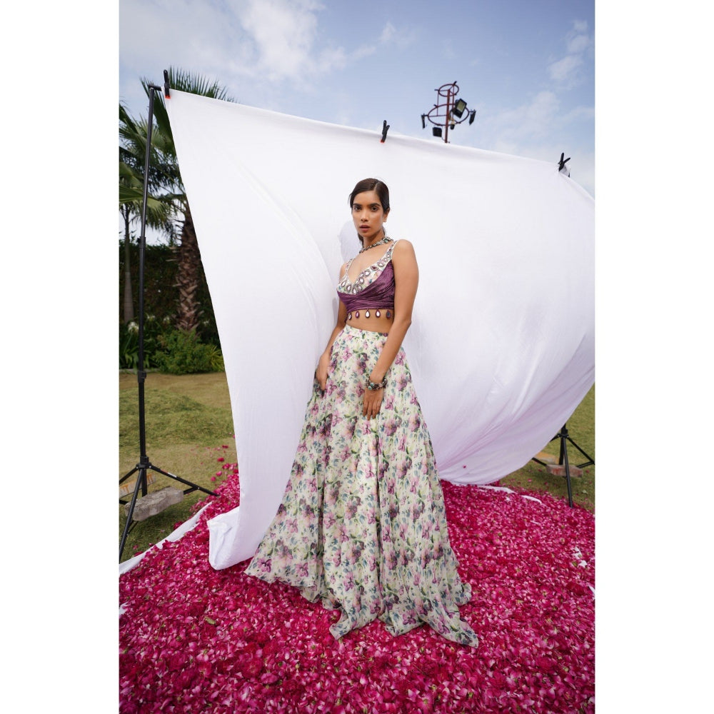 AHI Clothing Multicolor African Floral Lehenga with Bustier and Dupatta (Set of 3)