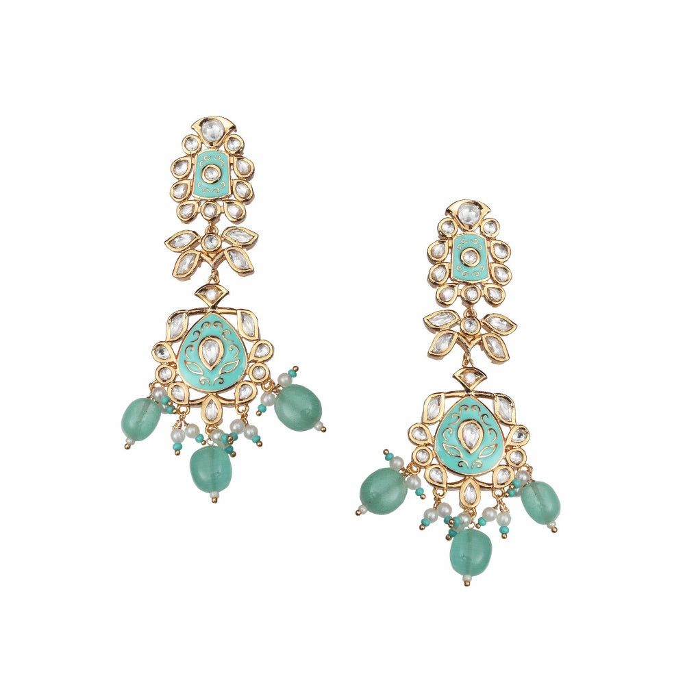 Akulya Jewels Turquoise Minakari Kundan Danglers