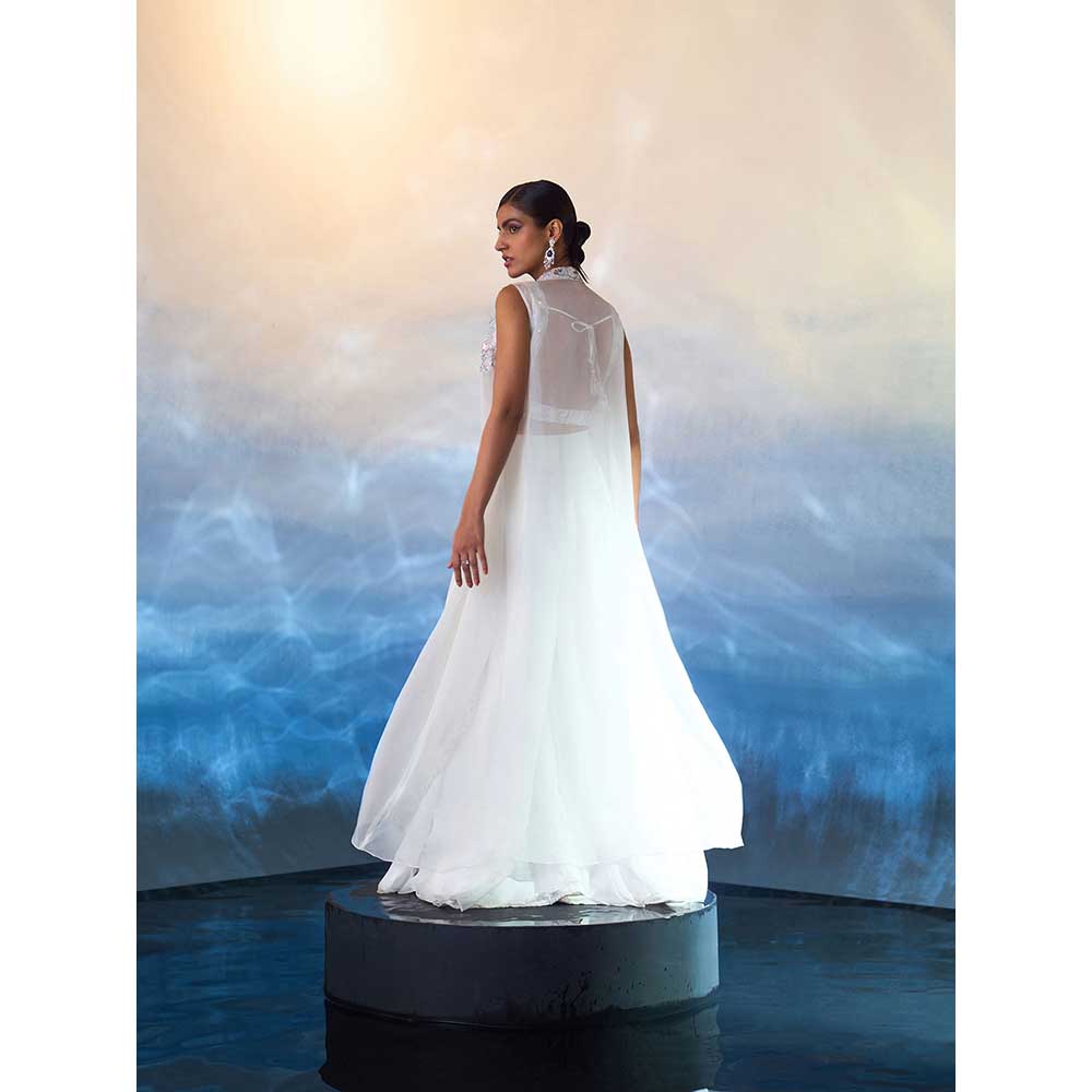 White Organza Top with Jacket and Sharara (Set of 3)