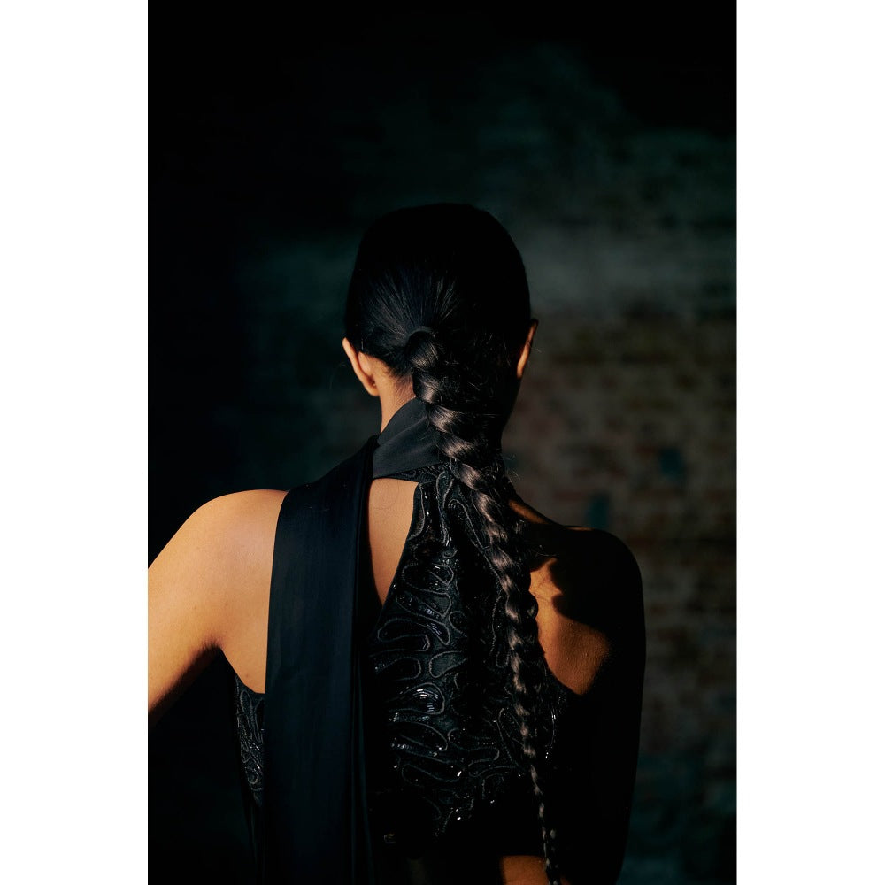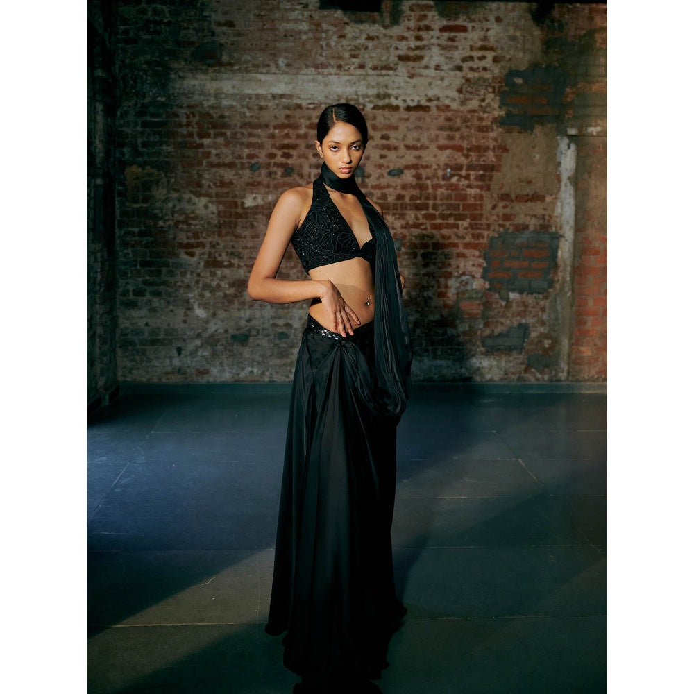 Description : Chemy Green Satin Organza Drape Saree with Tulle Blouse