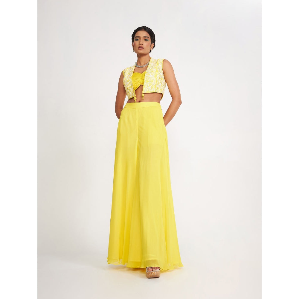 Clara Lemon Embroidered Silk Bustier with Sharara and Jacket (Set of 4)