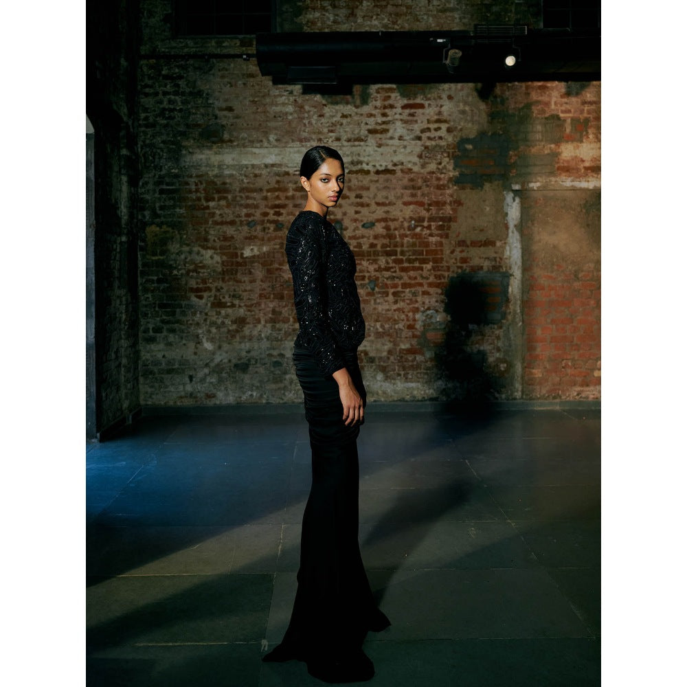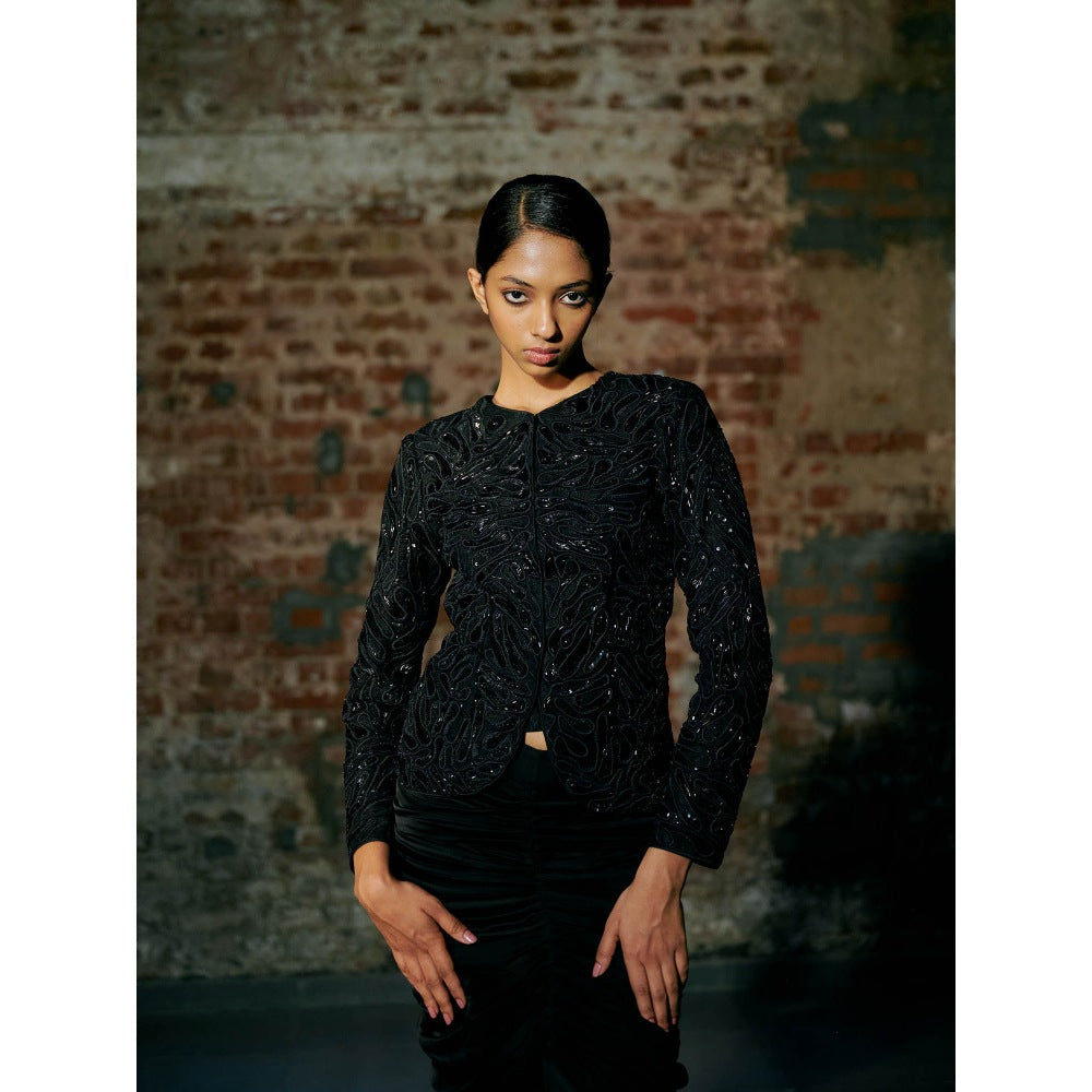 Description : Ennies Short Jacket Paired with Satin Organza Drape Lehenga