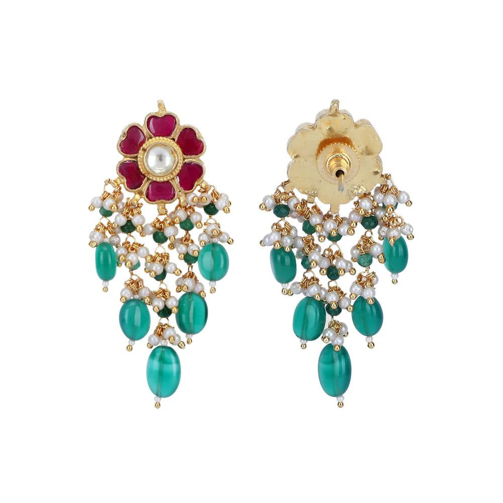 22KT Gold Plated Kundan Traditional Handcrafted Stones Red and Green Choker Necklace Set for women and Girls