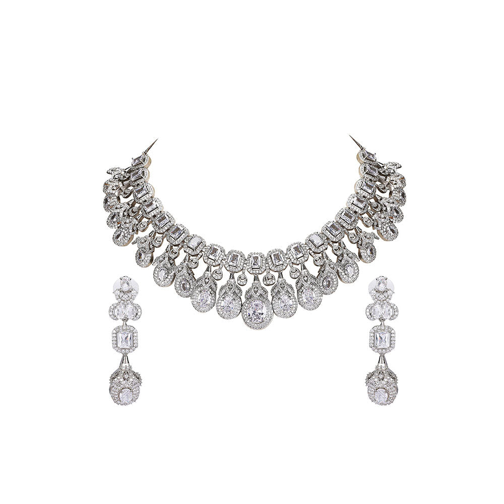 Auraa Trends Elegant Diamond Chandelier Necklace with Earrings