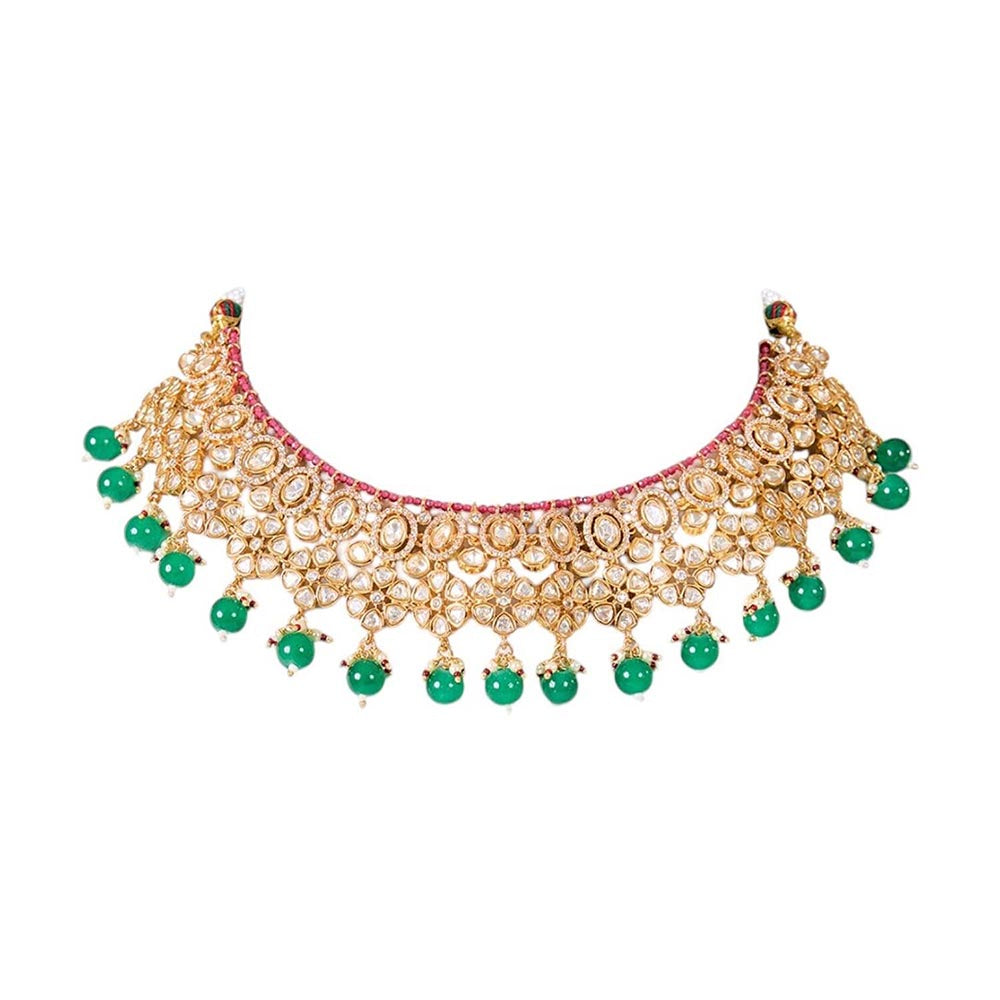 Traditional Gold-Plated Green Beads Kundan Choker Jewellery Set