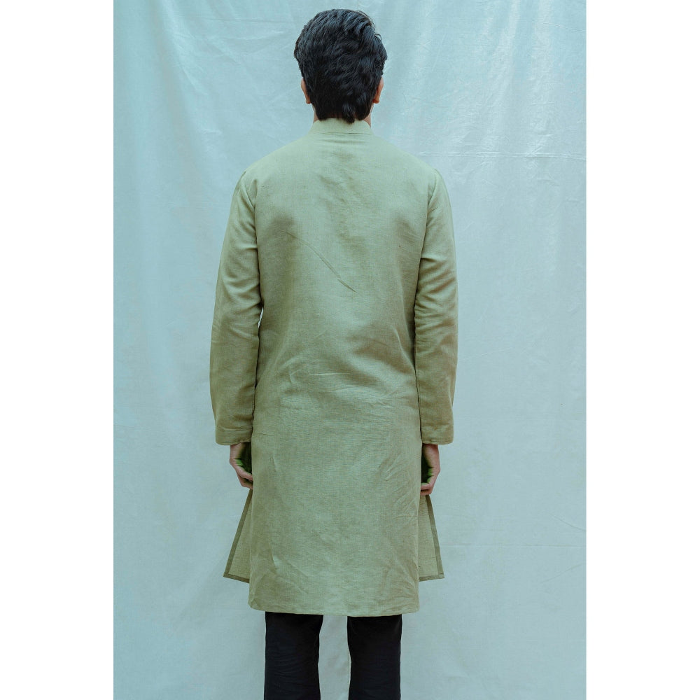 Cotton X Linen Overlap Kurta With Pajama (Set of 2)