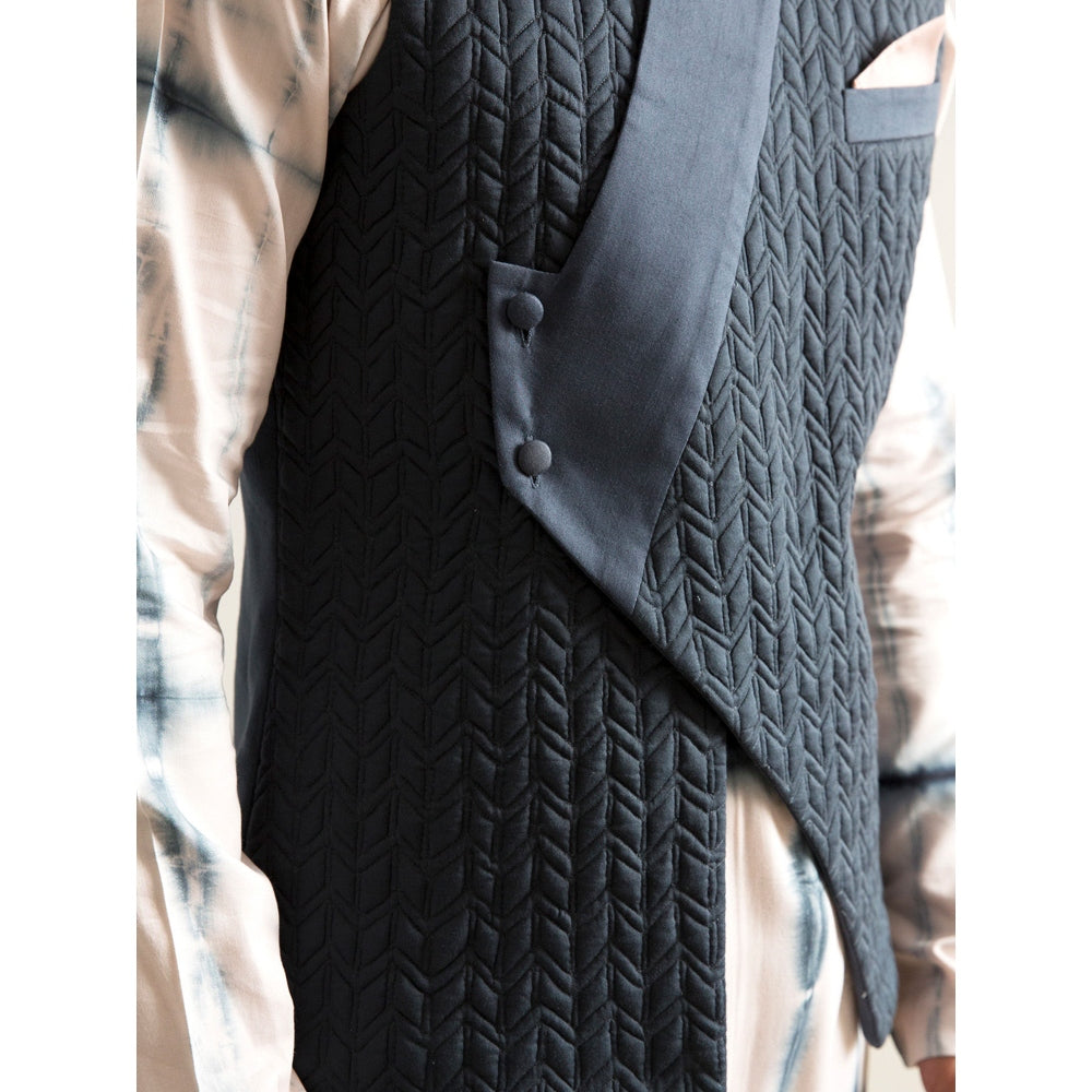Description : A Tie & Dye Jacket set with Pleatss and a placket at the ride side of the kurta, regular pants & Asymmetric Quilted Jackets.