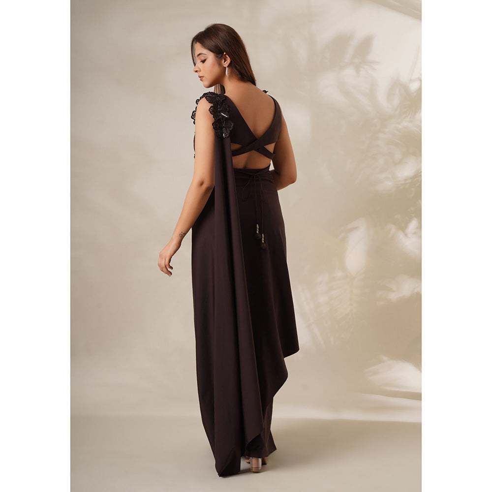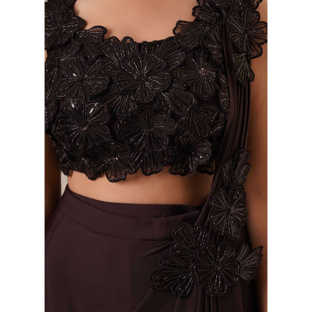 Hazel Resham Embroidered Pre-Drape Saree with Stitched Blouse
