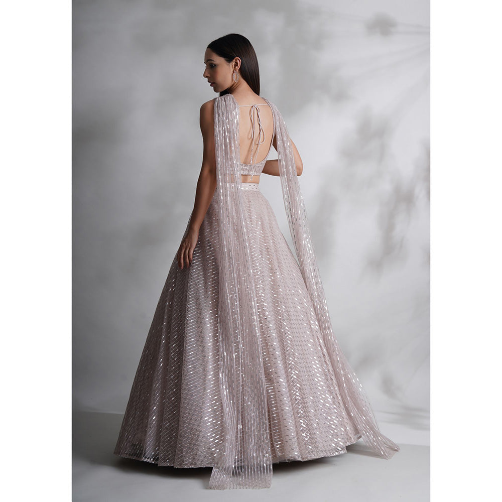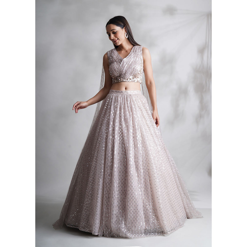 Description : Sequins Detailed Lavender Blouse With Lehenga And Attached Dupatta