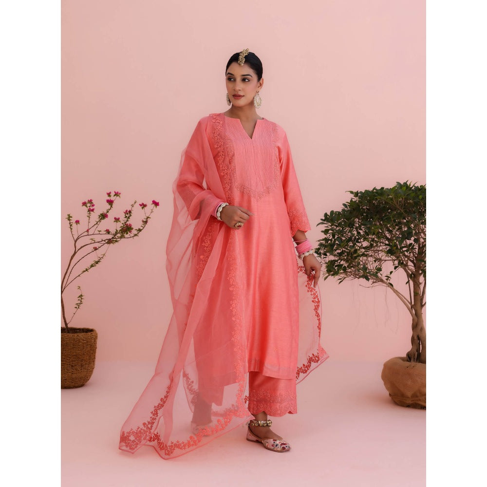 Archi Coral Kurta with Pant and Dupatta (Set of 3)
