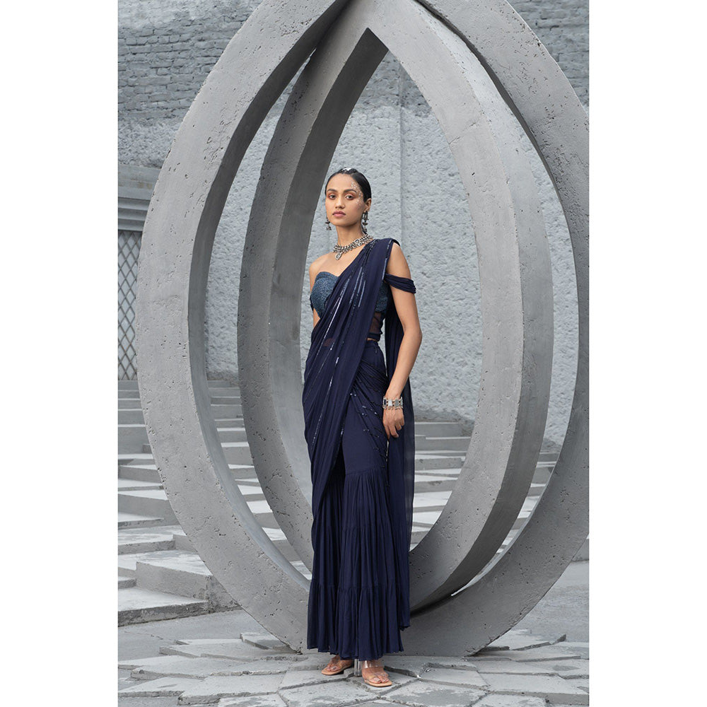 Chhavvi Aggarwal Women Embellished Black Sharara Saree with Blouse (Set of 2)