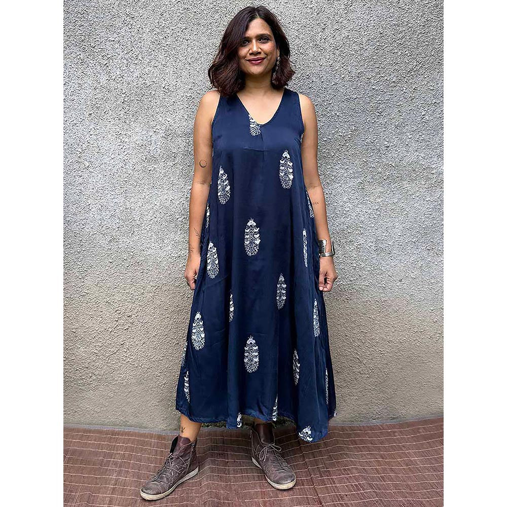 Chidiyaa Gypsy Heart Suzette Modal Silk Navy Blue Dress