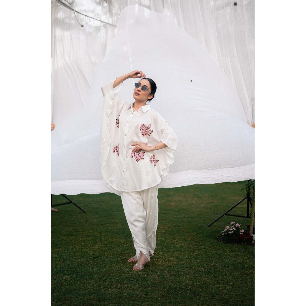 Description : A Sophisticated White German Satin Co-Ord Set, Perfect For Modern Elegance With A Touch Of Traditional Aari Embroidery. Embroidery: Aari Thread/Tilla Embroidery-Ord Set Fabric: German Satin colour: White no. Of Components: 2Components: Shirt & Dhoti delivery: Pan India production Time: 15 - 20 Days care: Dry Clean Only