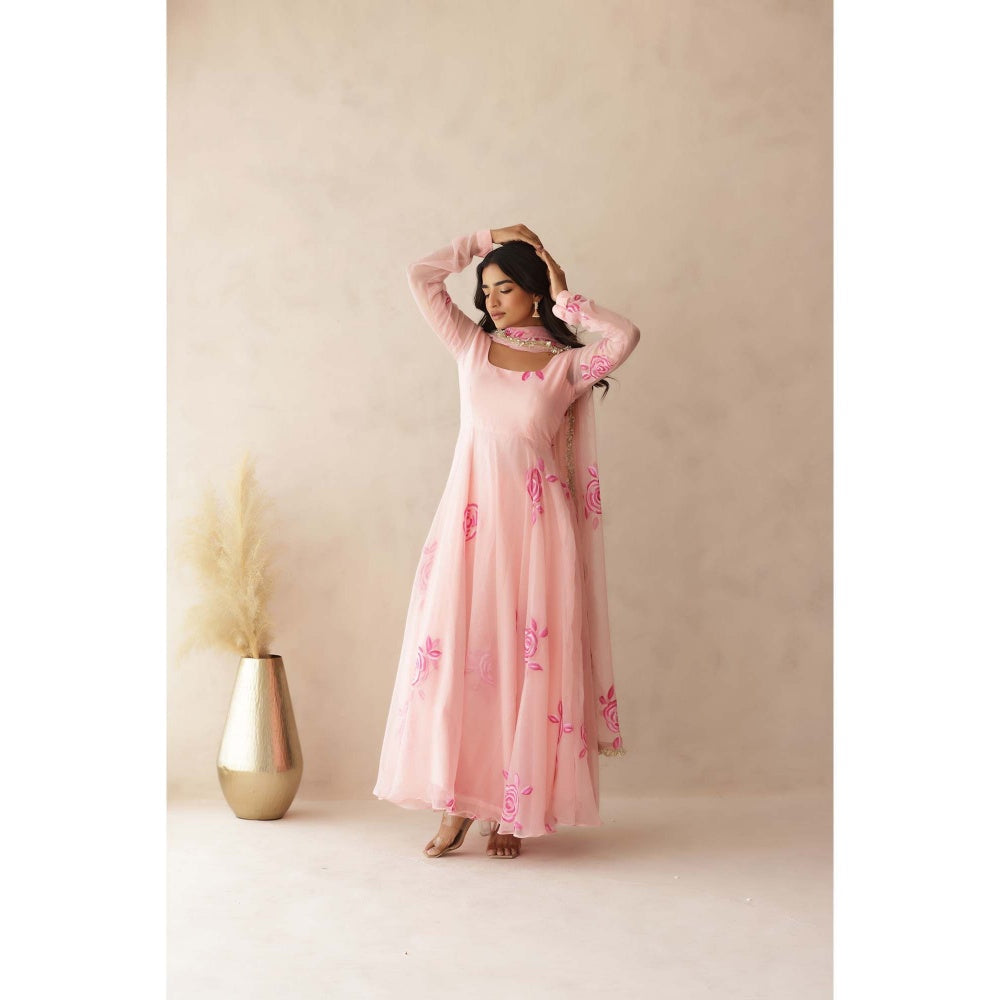 DEASHA INDIA Kavini Pastel Pink Anarkali with Pant and Dupatta (Set of 3)