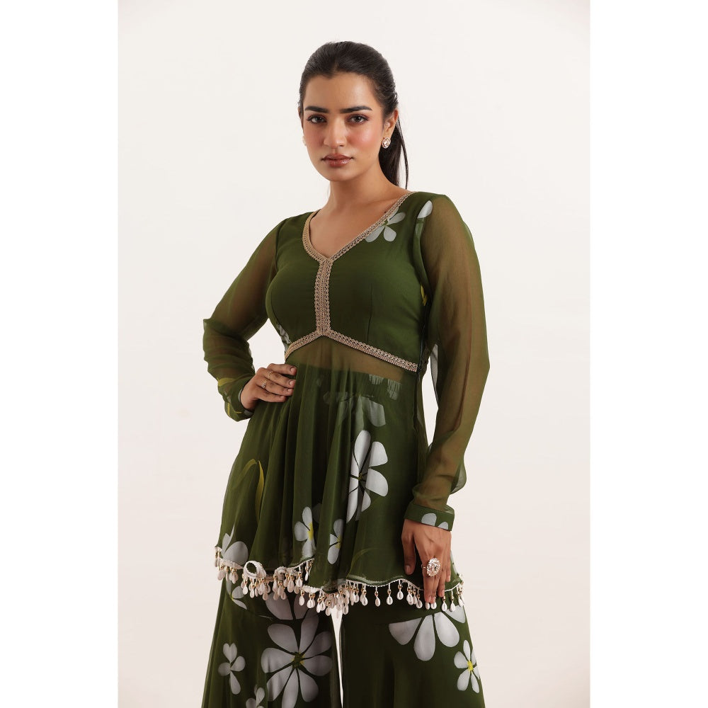 Veda Green Hand Painted Floral Co-Ord (Set of 2)