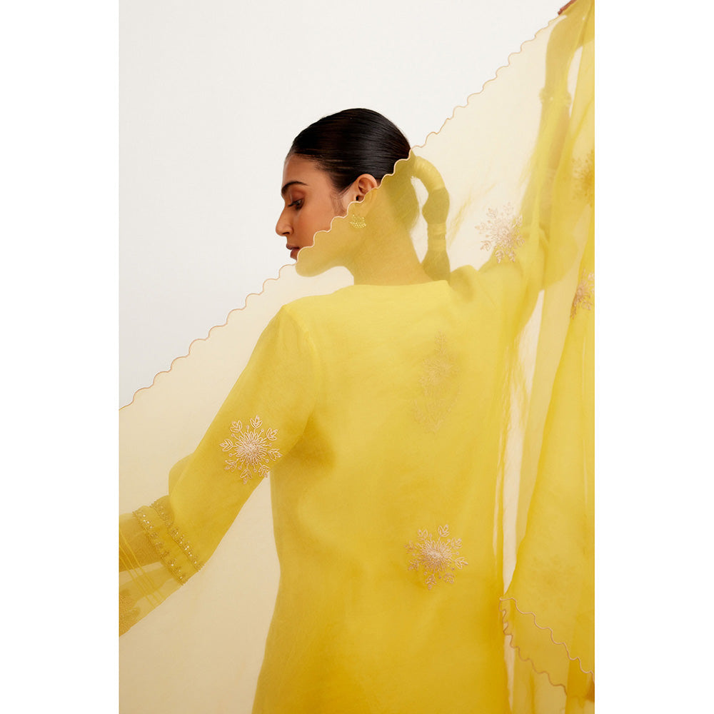 Mustard Dori Embroidered Kurta & Palazzo (Set of 3)