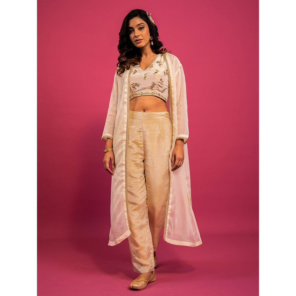 Harleen Kaur Off White Embroidered Crop Top with Pant and Jacket
