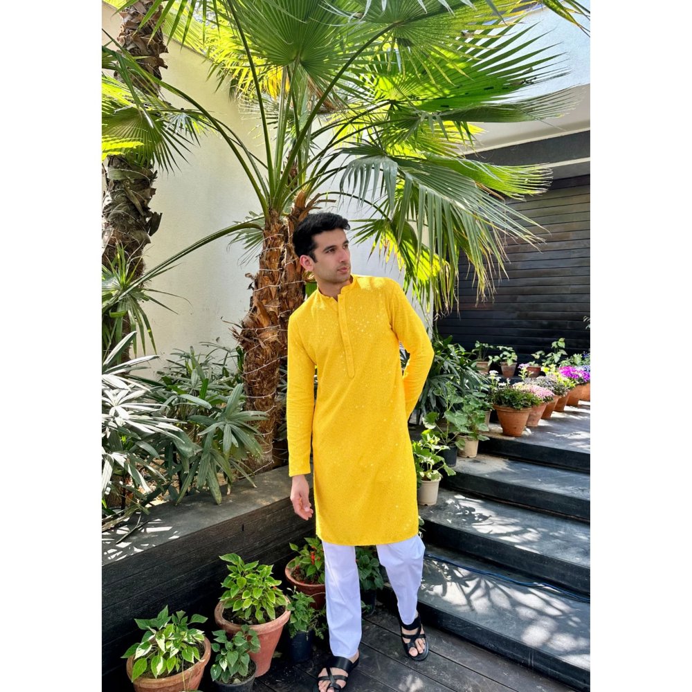 Aryan Chikankari Rayon Straight Men Kurta with Sequin