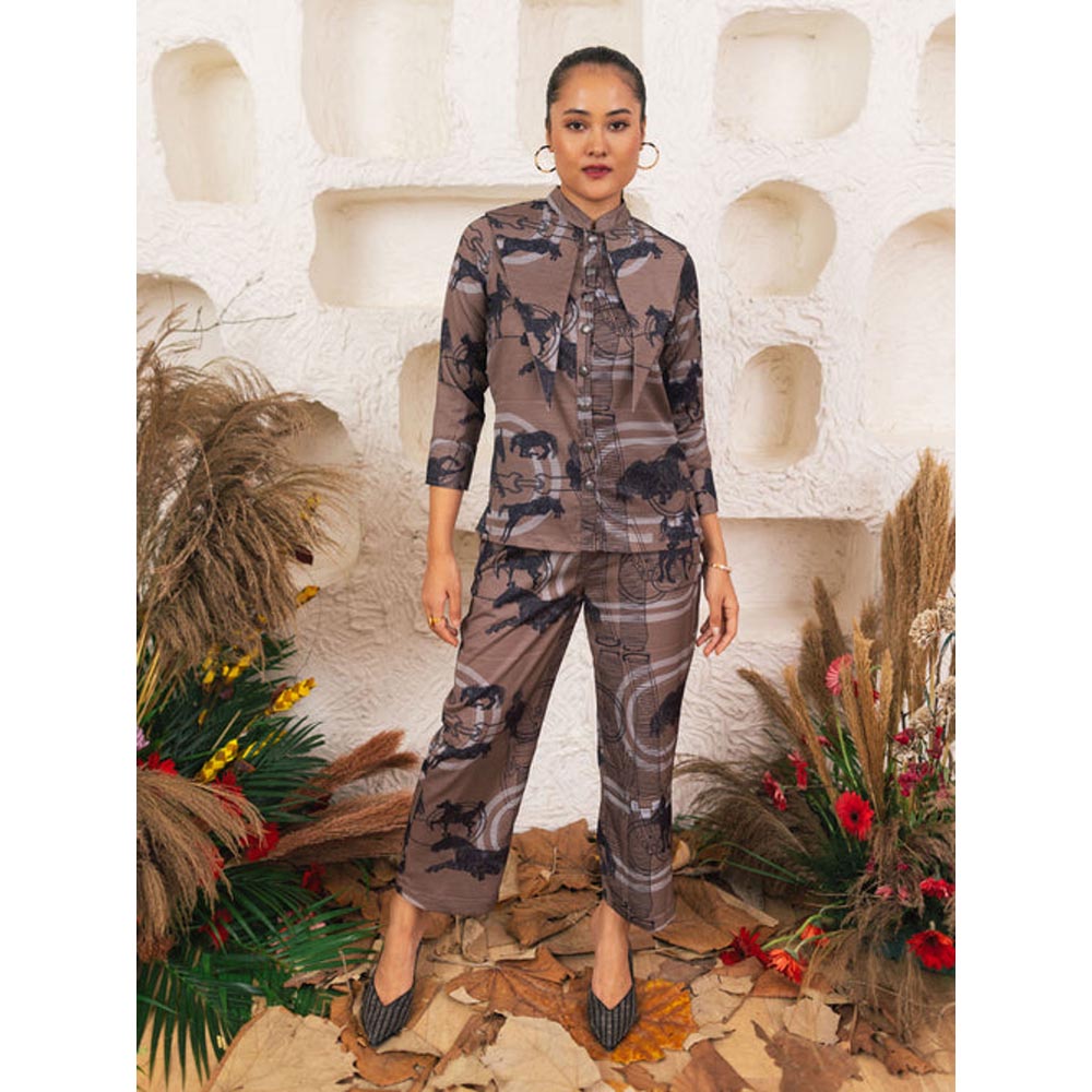 Description : Saddle Up For A Classic Tailored Fit Pants Decorated With Galloping Mare Figures And Intense Race Course Scenes. Elasticated Back With Front Statement Buttoned Closure Makes This Co-Ord A Perfect Pick For Your Next Adventure At The Fences. Items Are Sold As Separates. Only The Saddle Pants Is Included. Elasticated Back With Front Statement Button Closure. Galloping Mare Figures And Intense Race Course Scenes Printed On Fine Crepe Fabric. Model Is 5 Ft 7 Wearing Shirt Size Xs. We Use Flash Photography For Clear Images, But Slight Color Differences May Occur Due To Indoor/Outdoor Lighting Or Screen Settings.
