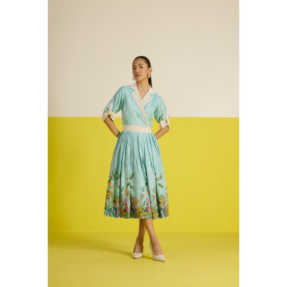 Blue Costabella Half Sleeve Midi Dress