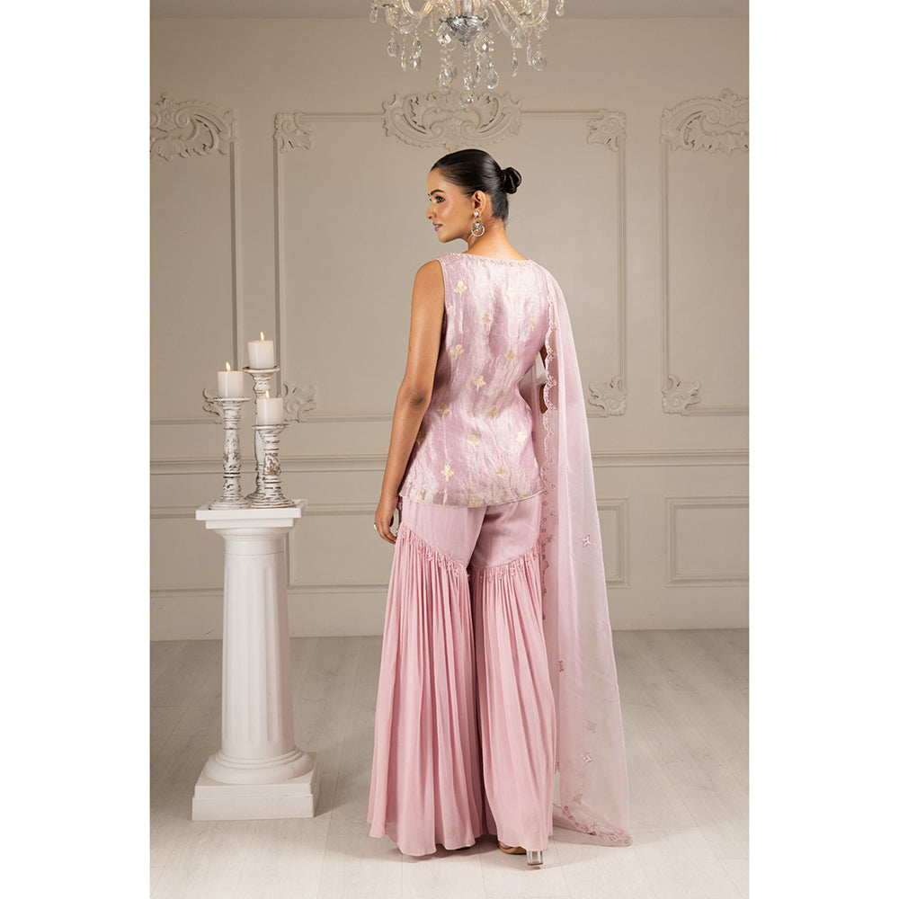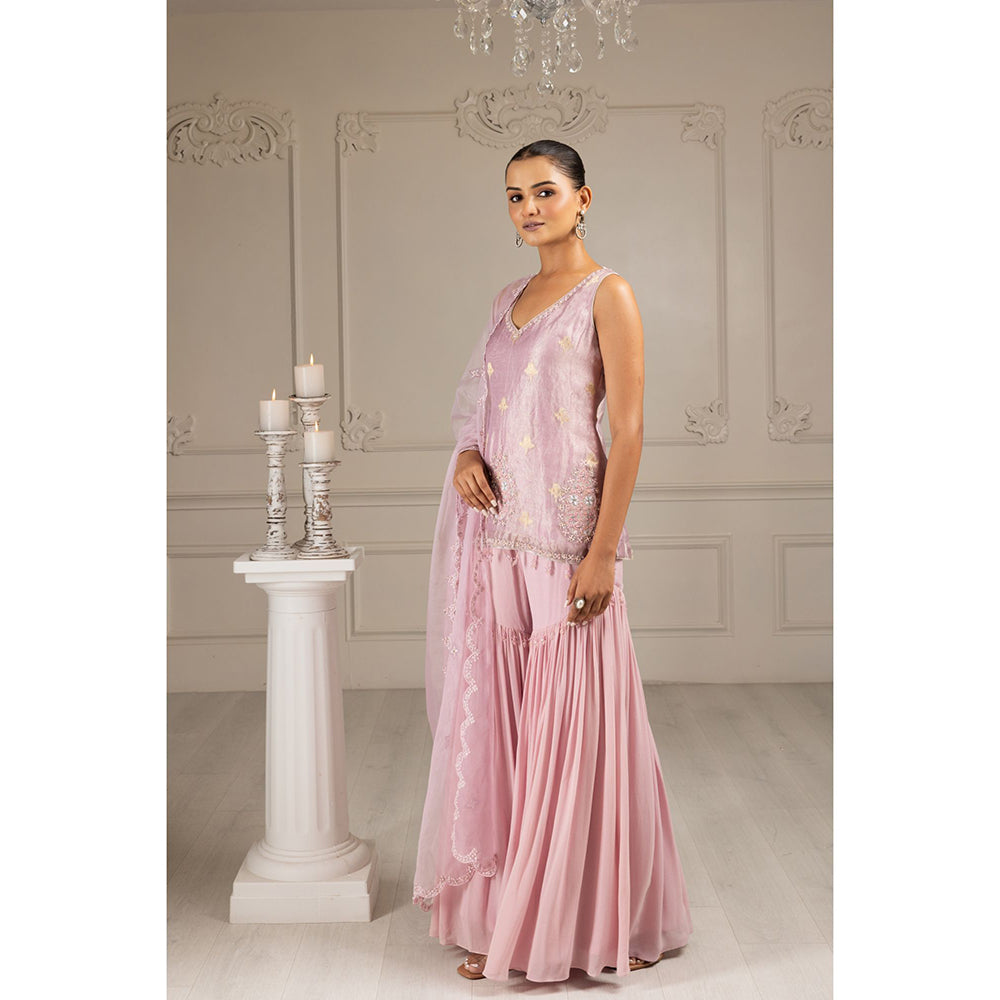 House of Supriya Lavender Embroidered Stylised Kurta with Sharara & Dupatta (Set of 3)