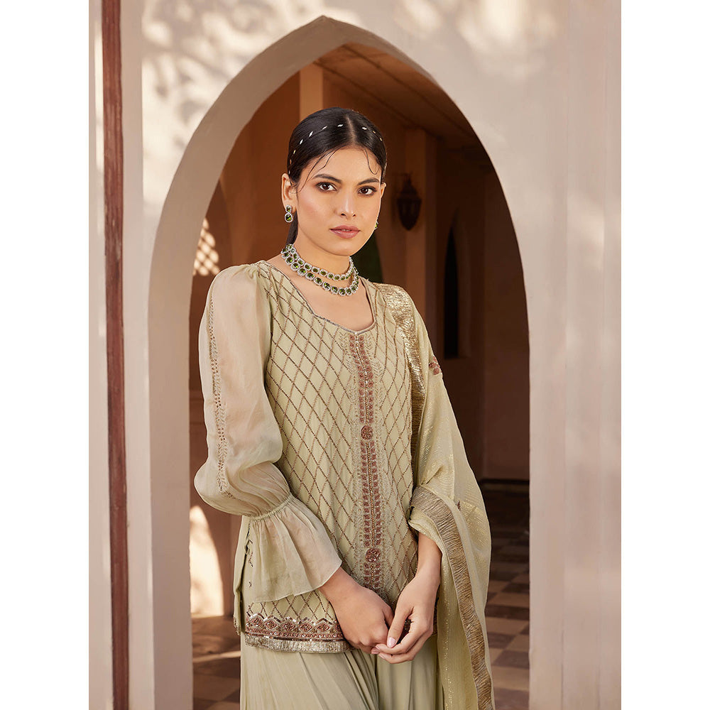 Pista Green Embroidered Kurta & Sharara with Dupatta (Set of 3)