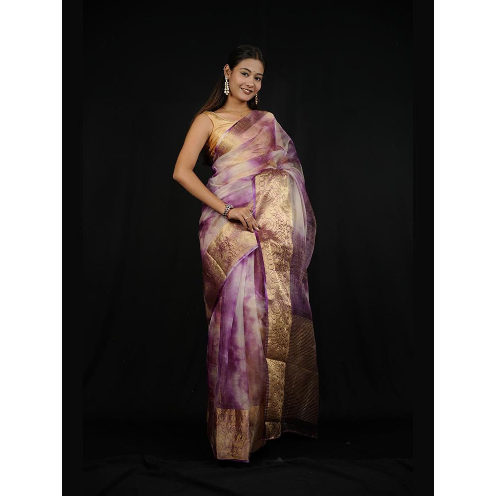 Purple Woven Pre-Draped Saree with Unstitched Blouse