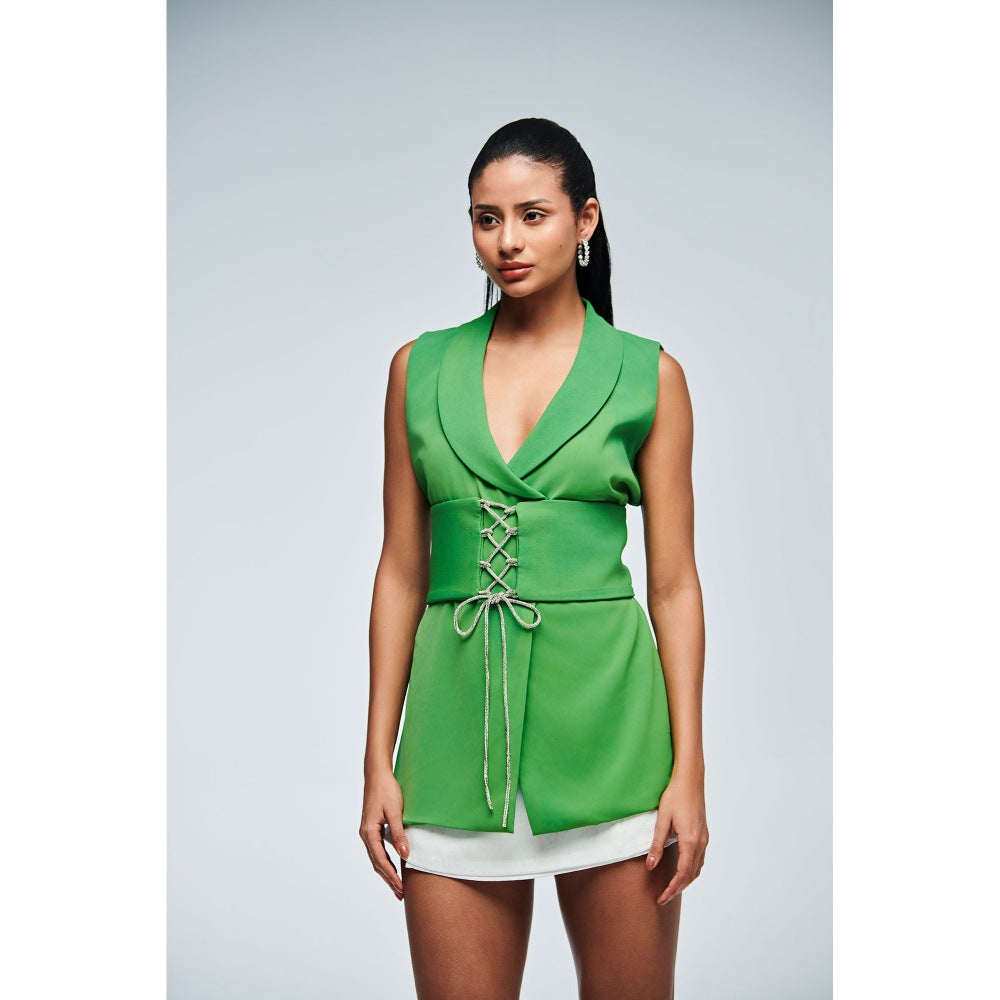 Green Ava Rhinestone Blazer with Belt (Set of 2)
