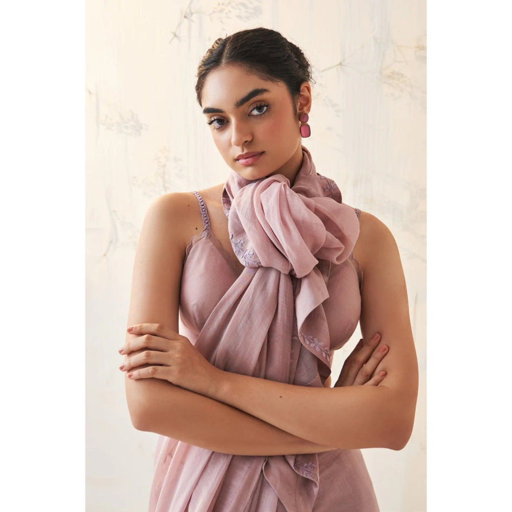 Lavender Chanderi Saree with Stitched Blouse and Petticoat