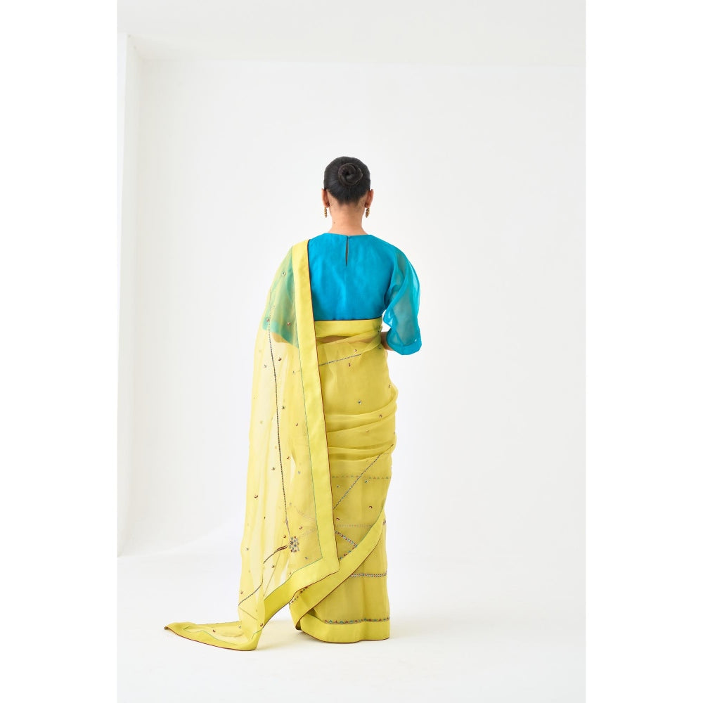 Description : Brighten Your Wardrobe with A Cheerful Yellow Organza Saree, Detailed with Intricate Embroidery Paired with A Natural Organic Cotton Petticoat. ( Blouse Is Not The Part Of This Saree, It Is Used Only for Photo Shoot Purpose )