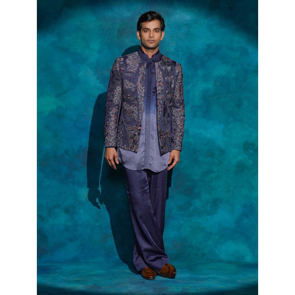 Jatin Malik Oceanic Purple Hand Embroidered Short Jacket with Kurta and Trouser