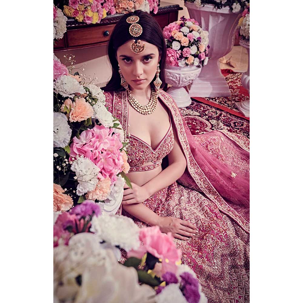 Description : Presenting an elegant pink lehenga, blouse, dupatta set from Bindani by Jigar and Nikita. It is crafted from high-quality. It features embellished & sequined pattern with beads and stones work, blouse styles sleeveless, sweetheart neck and mid waist rise style. It is perfect for wedding or any special occasions.