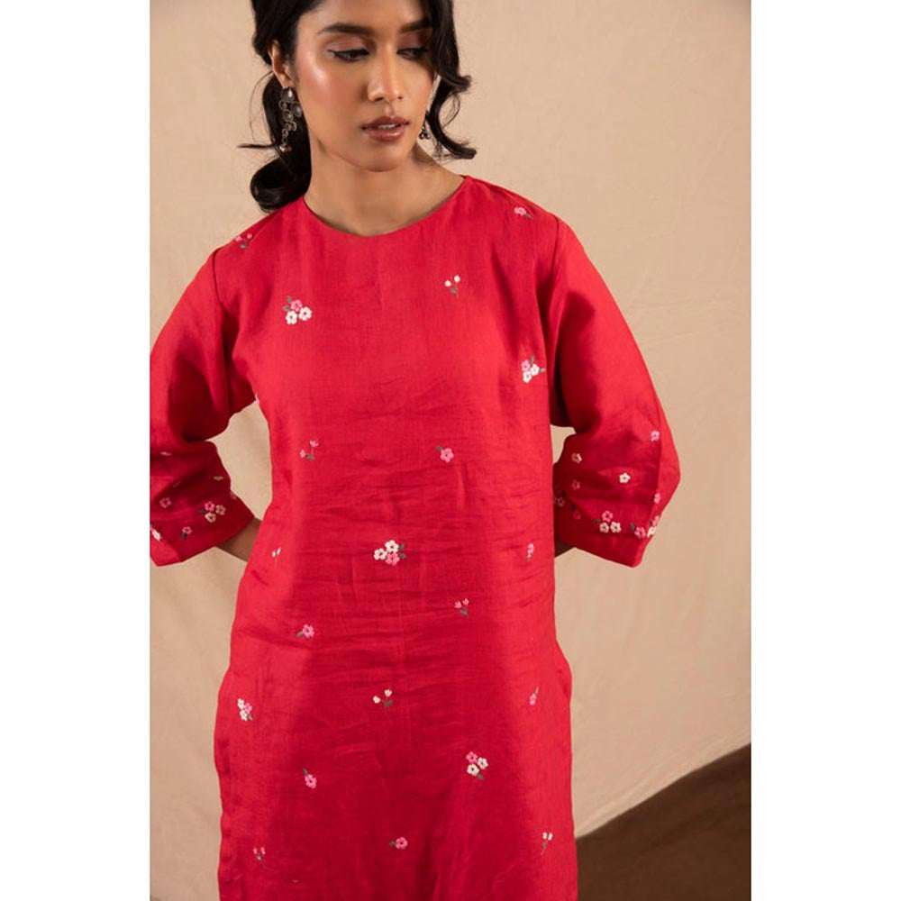 KAVANA Women Embroidered Red Shamaa Kurta and Pant