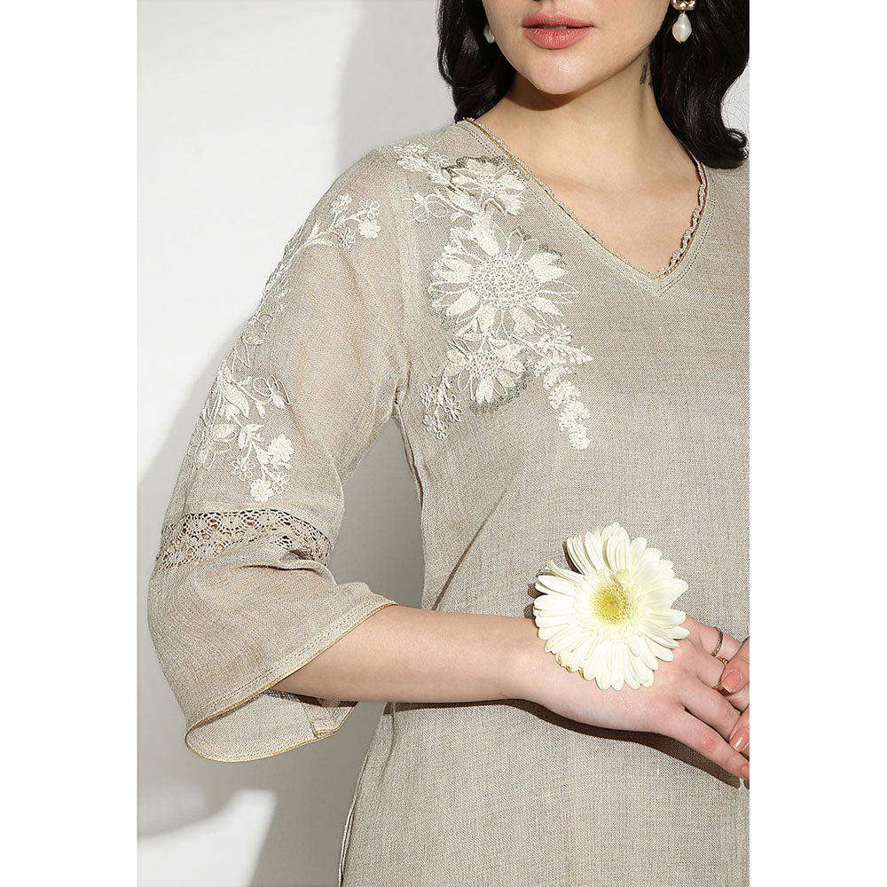 Beige Natural Fly Free Kurta with Pant (Set of 2)